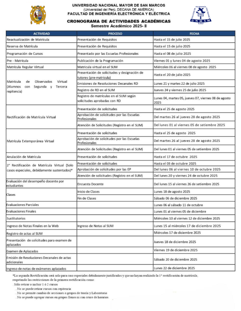 - Solicitar a Unidad de Matrícula (Correo: matricula.fiee@unmsm.edu.pe)